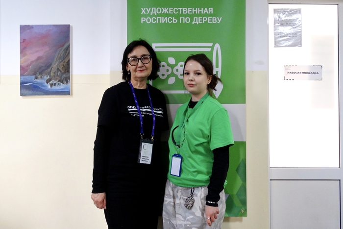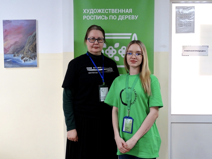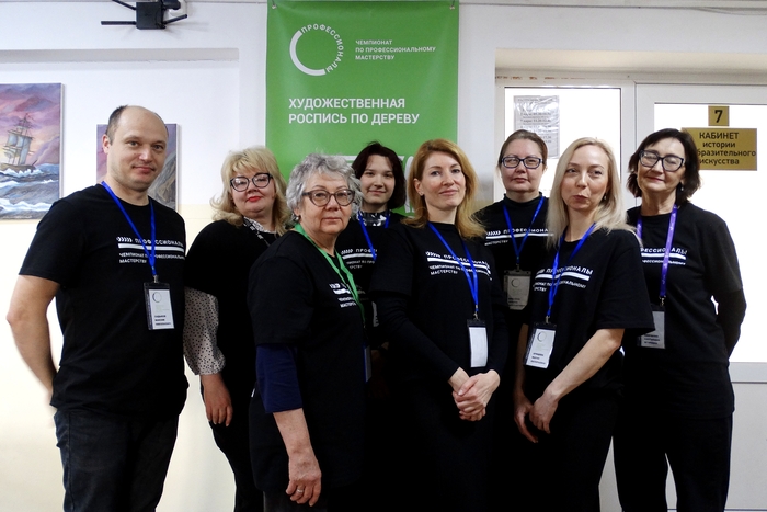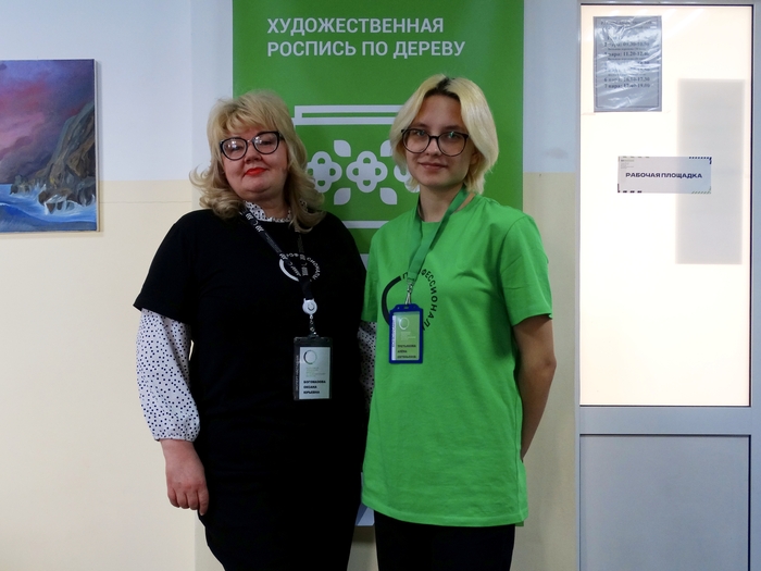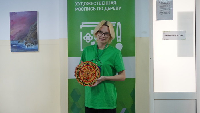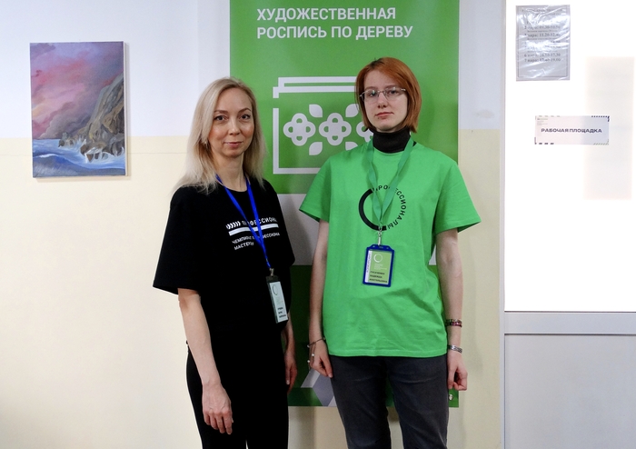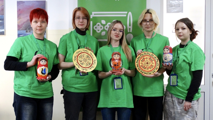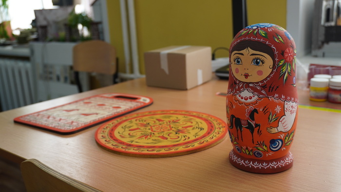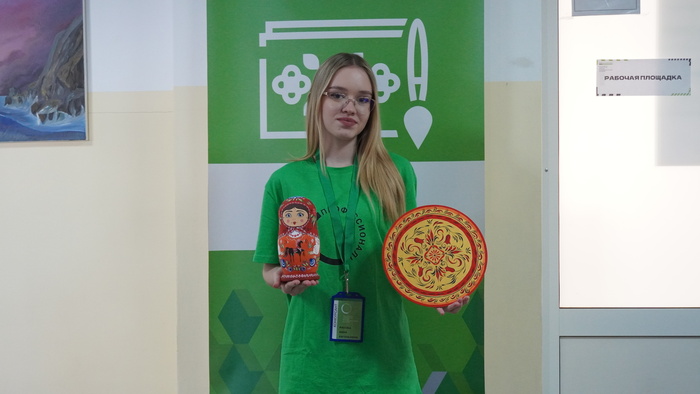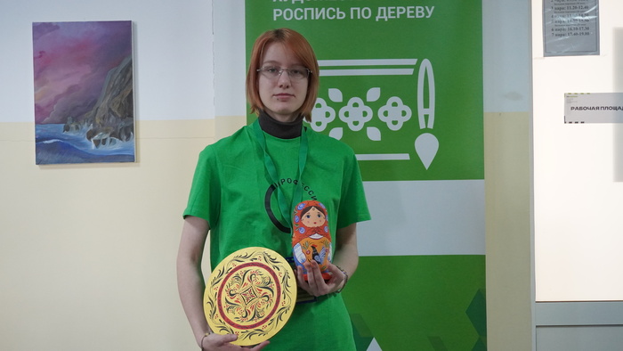 Участники компетенции «Роспись по дереву» работали над двумя изделиями — матрёшкой и кухонной разделочной дощечкой. В предыдущие дни они наносили основные узоры и формировали композицию, третий же день стал этапом завершения.