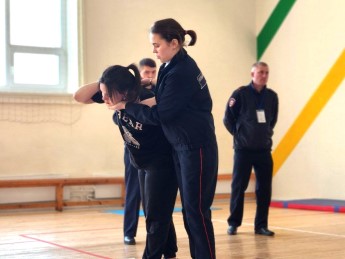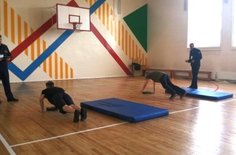 Команды участников по компетенции "Правоохранительная деятельность" продолжают демонстрировать навыки и умения, необходимые полицейскому. В спортивном зале участники выполняют боевые приёмы борьбы в целях самообороны, а также комплекс силовых упражнений необходимые полицейскому для работы в реальных условиях.