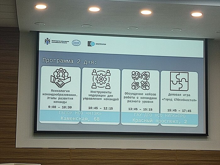 Программа включала экспертные диалоги: «Управление в образовании: цели и приоритеты», «Инструменты модерации для управления командой», «Лидер и его команда: как избежать шторма и дойти до цели»; тренинги: «Управленческий минимум», «Психология командообразования», «Как создать живое сообщество», «Проектирование модели сообщества»; деловую игру «Город СПОсобностей» и нетворкинг «Формирование общего плана развития сообщества управленцев системы образовательных организаций (матрица совместных действий)».
