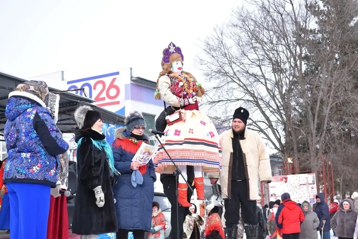 Программа была насыщенной: силовые состязания, вкусные точки, кулинарный поединок, детские забавы, а также конкурс масленичных чучел.