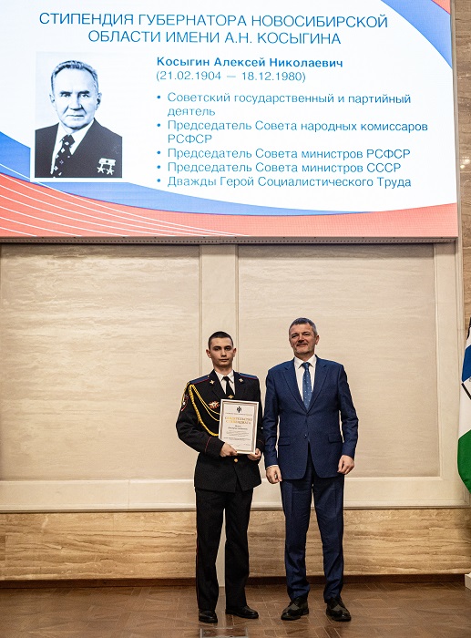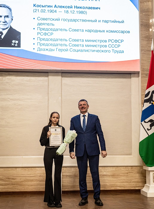 Студенты Новосибирского кооперативного техникума имени А.Н. Косыгина Новосибирского облпотребсоюза получили свидетельства стипендиатов Губернатора Новосибирской области имени А.Н. Косыгина.