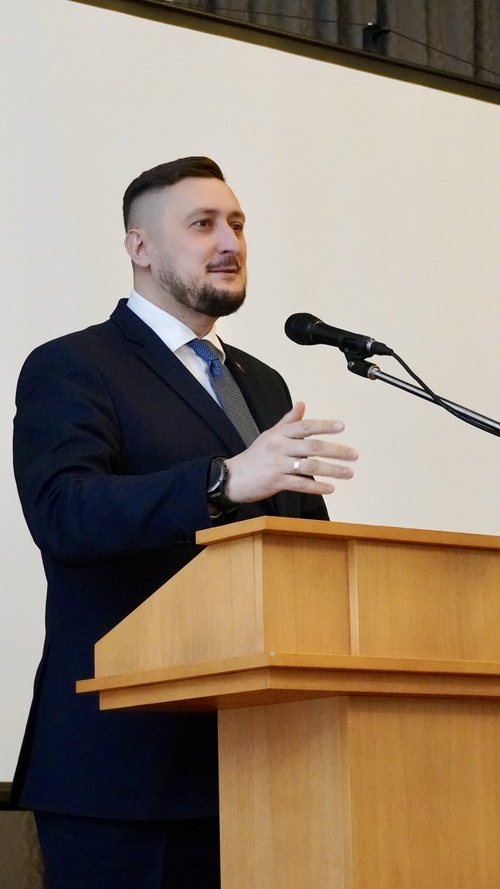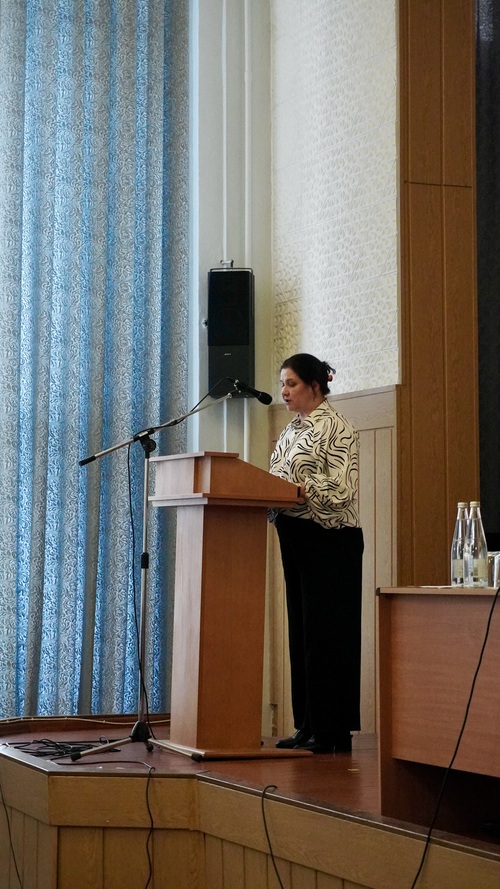 Директор Новосибирского кооперативного техникума Татьяна Попова рассказала участникам собрания о наиболее ярких достижениях и победах коллектива техникума в ушедшем 2025 году. Хочется отметить, что юные дизайнеры в фойе актового зала представили свои работы: роспись по дереву, шелку, керамике, а будущие специалисты сферы питания – помогли в обслуживании фуршета. Завершилось выступление демонстрацией видеоролика об участии студентов техникума в Параде в честь 80-летия Победы в Великой Отечественной войне.