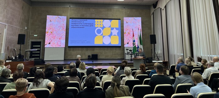 Третий доклад представил Максим Садыков, преподаватель высшей категории. В своём выступлении он поднял важный вопрос о том, как отличить результаты человеческого творчества от продуктов, созданных с помощью искусственного интеллекта. Это актуально в контексте оценки работ студентов и понимания, какие навыки и компетенции развиваются у обучающихся.