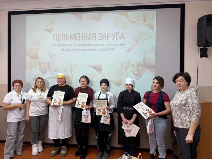 Сегодня в стенах филиала техникума вновь прошло вкусное событие под названием «Пельменная заруба», объединившее 5 команд в борьбе за звание лучших мастеров пельменного дела.