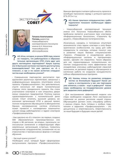 Итак, сегодня, в начале 2026 года, можно ли уже говорить, что работодатели и образовательные организации СПО стали друг для друга настоящими партнерами? Какую оценку (по 5-балльной системе) Вы поставили бы достигнутому взаимодействию? Пожалуйста, прокомментируйте Вашу оценку: что уже сделано на «5 с плюсом», а где, по каким аспектам сотрудничества необходимы еще усилия?
