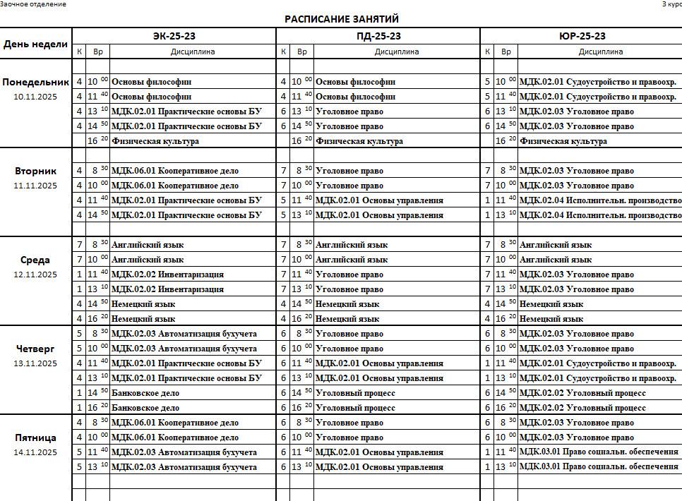 расписание занятий на 10 - 14 ноября 2025 г. (Заочное) просмотр (скачать)