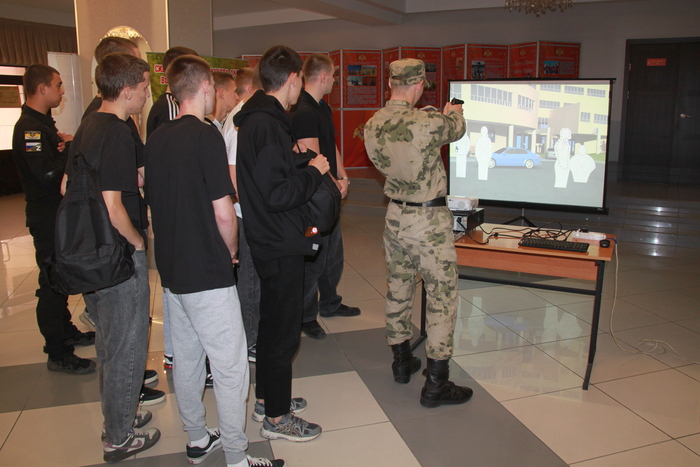 Студентам продемонстрировали фильм, рассказывающий о специфике и задачах войск национальной гвардии Российской Федерации, о подразделениях, входящих в его структуру – воинских частях, СОБР и ОМОН, лицензионно-разрешительной службе, вневедомственной охране, об учебных заведениях Росгвардии.