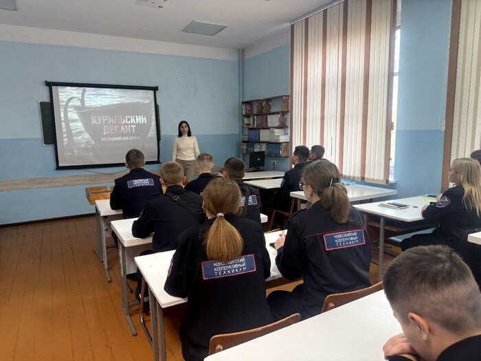 Для студентов выпускной группы специальности «Правоохранительная деятельность», Наталья Сергеевна провела профориентационную беседу, а также рассказала ребятам о Курильской десантной операции и ее роли в мировой истории.