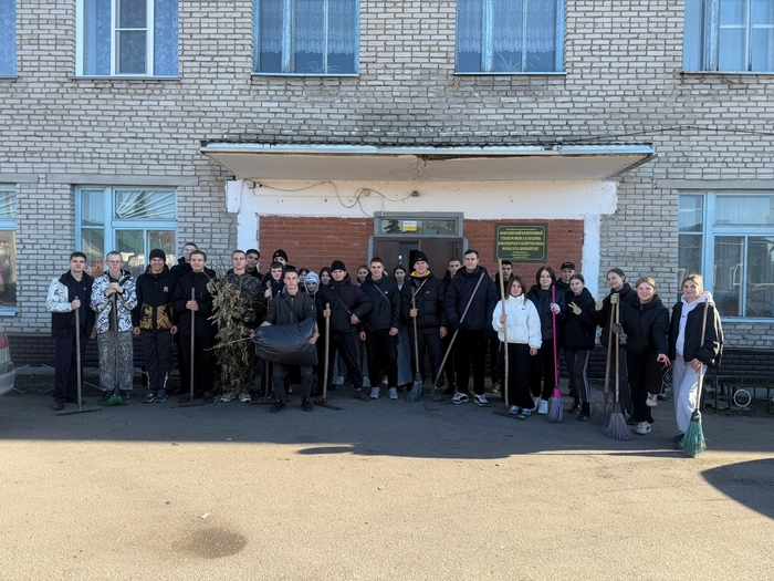 Сегодня усилиями студентов 2 и 3 курсов специальности «Правоохранительная деятельность» в рамках районного субботника была организована уборка учебных аудиторий и прилегающей территории к помещению филиала техникума в рп. Краснозерское.