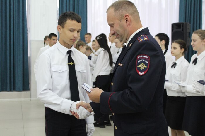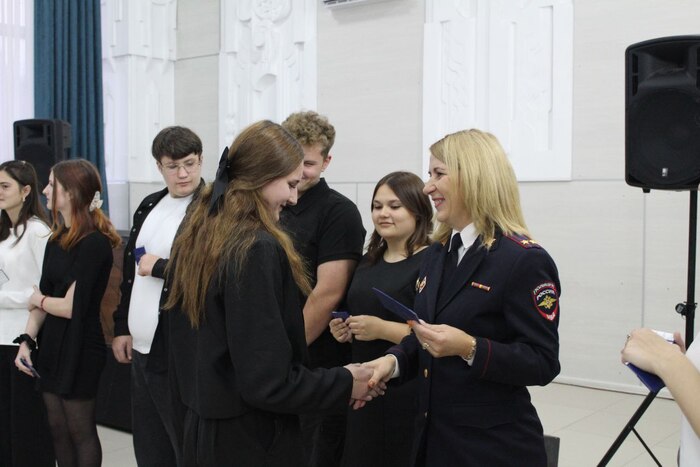 Вручили первый документ ребятам заведующая филиалом техникума – Евгения Петровна Лотко и приглашенные гости: Начальник МО МВД России «Краснозерский» - Максим Валерьевич Бондаренко и Заместитель начальника МО МВД России «Краснозерский», руководитель группы по работе с личным составом – Елена Александровна Захарова.